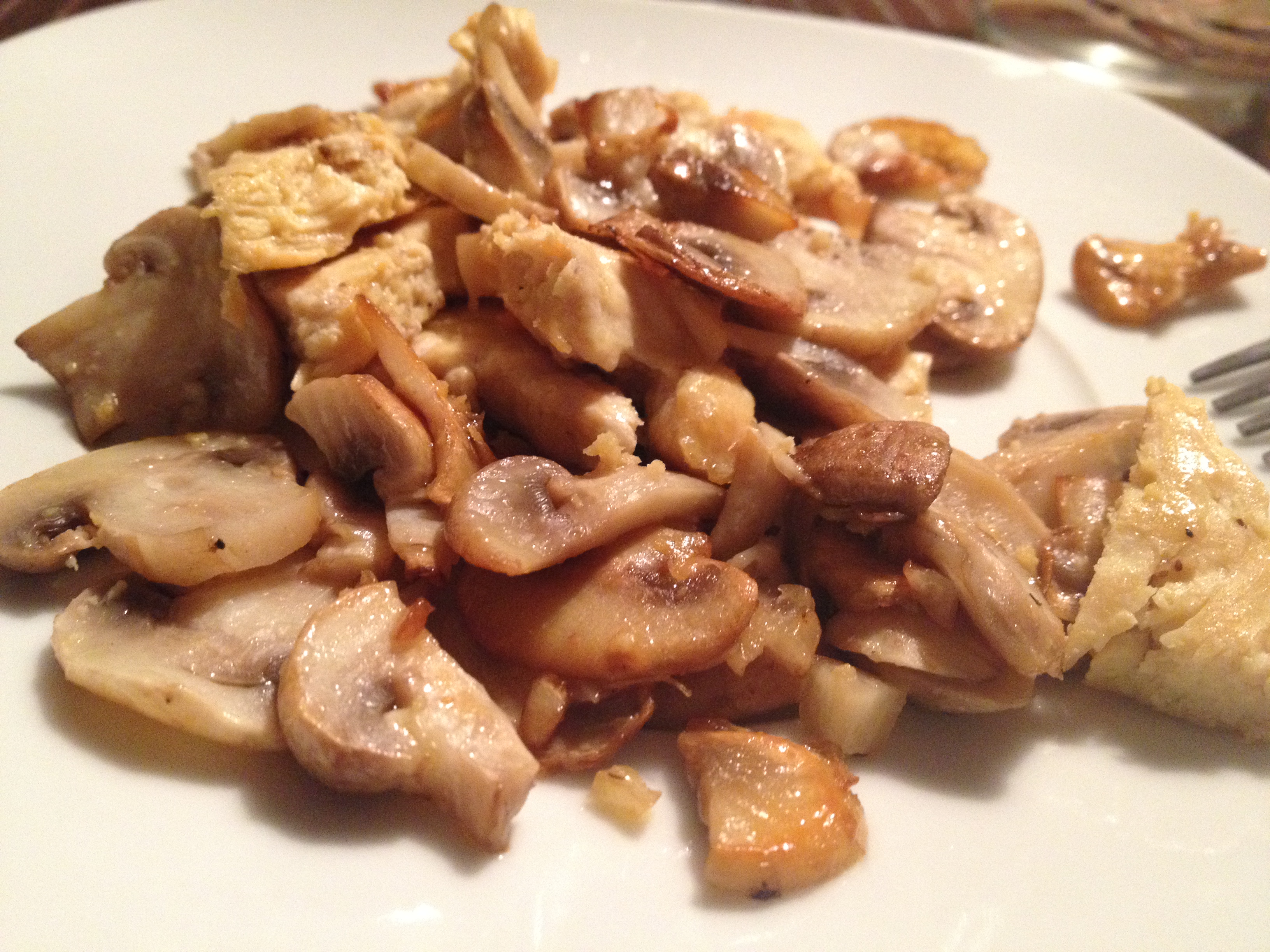 En otra sartén vamos haciendo la pechuga. Si tenemos sazonador de pollo lo echamos sobre la pechuga cruda para que agarre todo el sabor; si no tenemos, en su defecto podemos usar orégano, albahaca, sal y pimienta. Cuando la pechuga esté lista la troceamos y la agregamos a la sartén con los champiñones que ya estarán doraditos. Removemos y marinamos un poquito para que se mezclen los sabores et voilà!